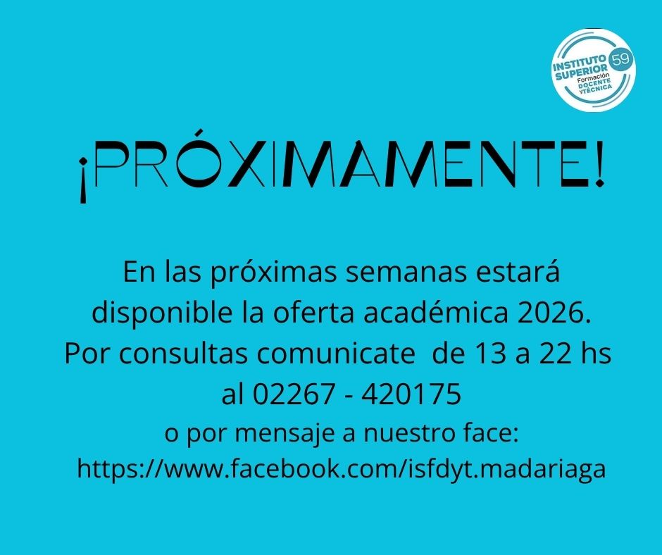 CONSULTAS: Preceptoría: 02267-420175 o mensaje privado a https://www.facebook.com/isfdyt.madariaga